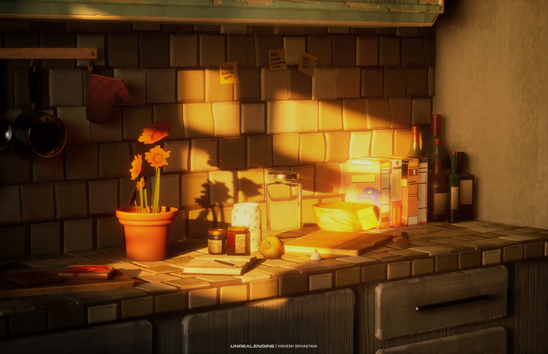 A quick lighting doodle I did over the weekend, I’ve been messing around in the ‘Stylized kitchen’ pack on the fab stepping a little away from realism, focusing on a stylized ‘Pixar’ approach for the overall look and feel to convey the mood in Unreal Engine 5.